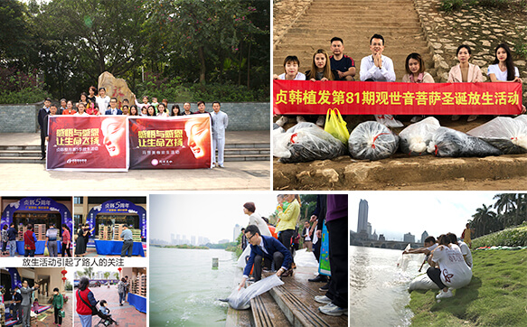 2011年以来,郝院长身体力行的向员工弘扬佛学文化,院部初一十五食堂提倡素食,并且多年来累计发起放生活动87次。